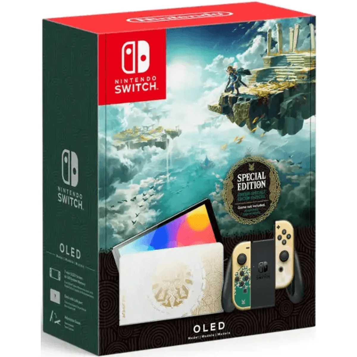 Los mandos Joy-Con™ incluidos cuentan con los clásicos colores verde y dorado de la serie The Legend of Zelda junto con símbolos y patrones del nuevo juego